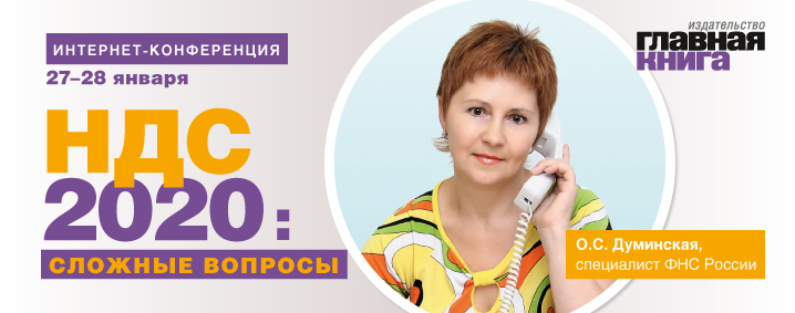 Только 27 и 28 января 2020 года подписчики журнала «Главная книга» могут задать свои вопросы по НДС специалисту ФНС России Думинской Ольге Сергеевне.