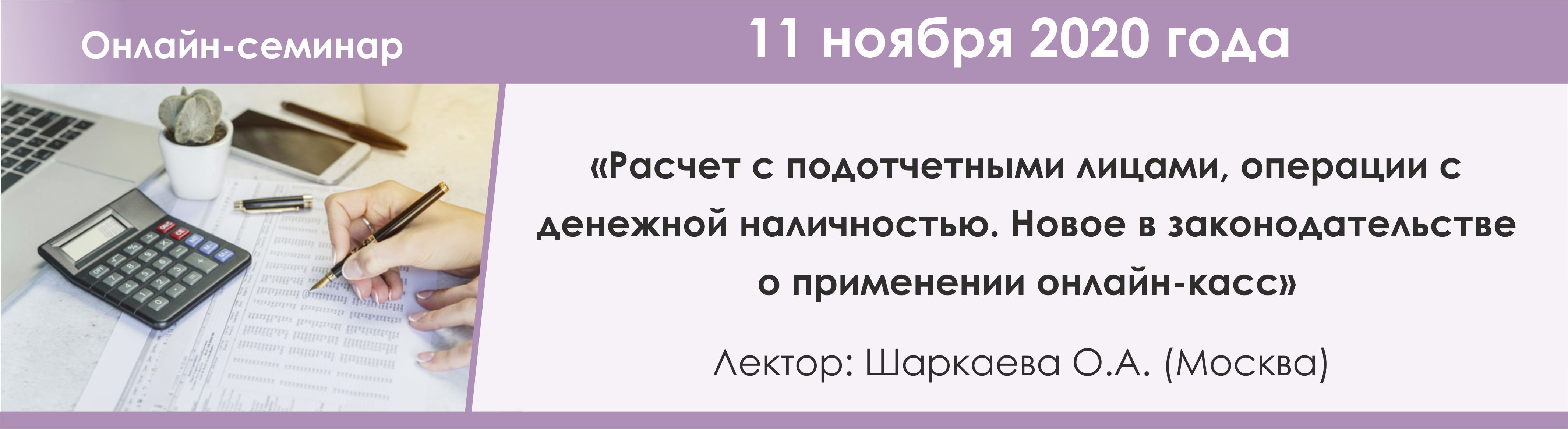Лектор: Шаркаева Ольга Анатольевна – к.э.н., доцент, аттестованный консультант по налогам и сборам, член Палаты налоговых консультантов, аттестованный профессиональный бухгалтер, аттестованный преподаватель ИПБ России, ведущий специалист консалтинговой компании.