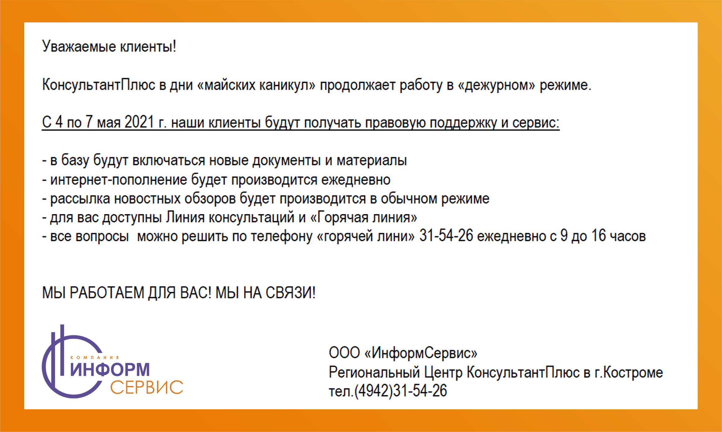 ОФИЦИАЛЬНОЕ ОБРАЩЕНИЕ КОМПАНИИ «ИНФОРМСЕРВИС»